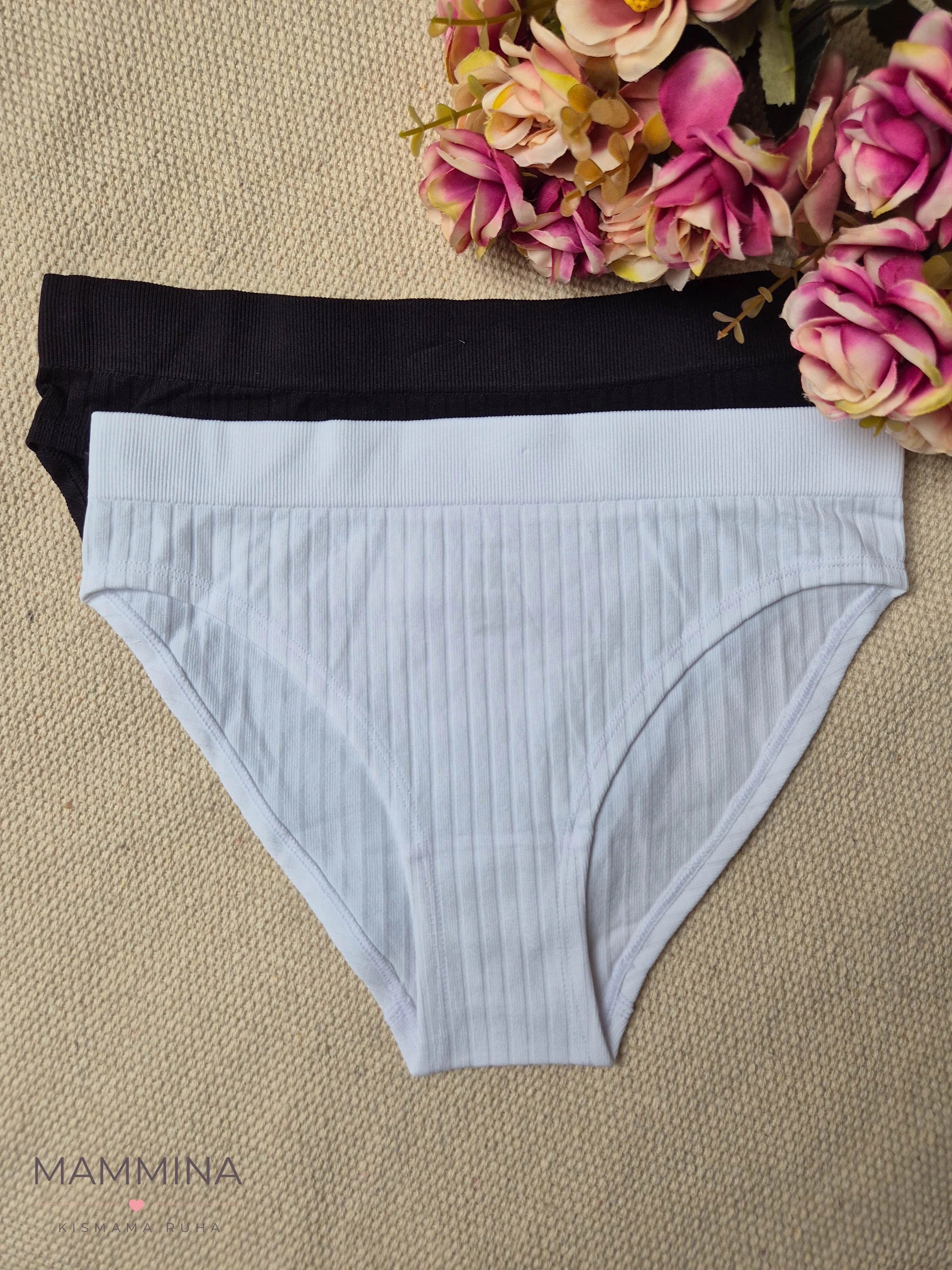 2 darabos varrásmentes slip fazonú bugyi csomag Fedezd fel nőies slip fazonú, puha és rugalmas anyagból készült fehérneműinket, amelyek egész napos kényelmet biztosítanak. Egyszerű, időtlen szabásuknak köszönhetően tökéletesek a mindennapi viseletre, szabad mozgást és könnyedséget nyújtva bármilyen ruhában. A csomag két klasszikus árnyalatot tartalmaz: fehér és fekete. Ideális minden szakaszban: hordható várandósan és szülés után is. Az S/M méret beírt mérete M/L. Méretezés a leírásnál található. |