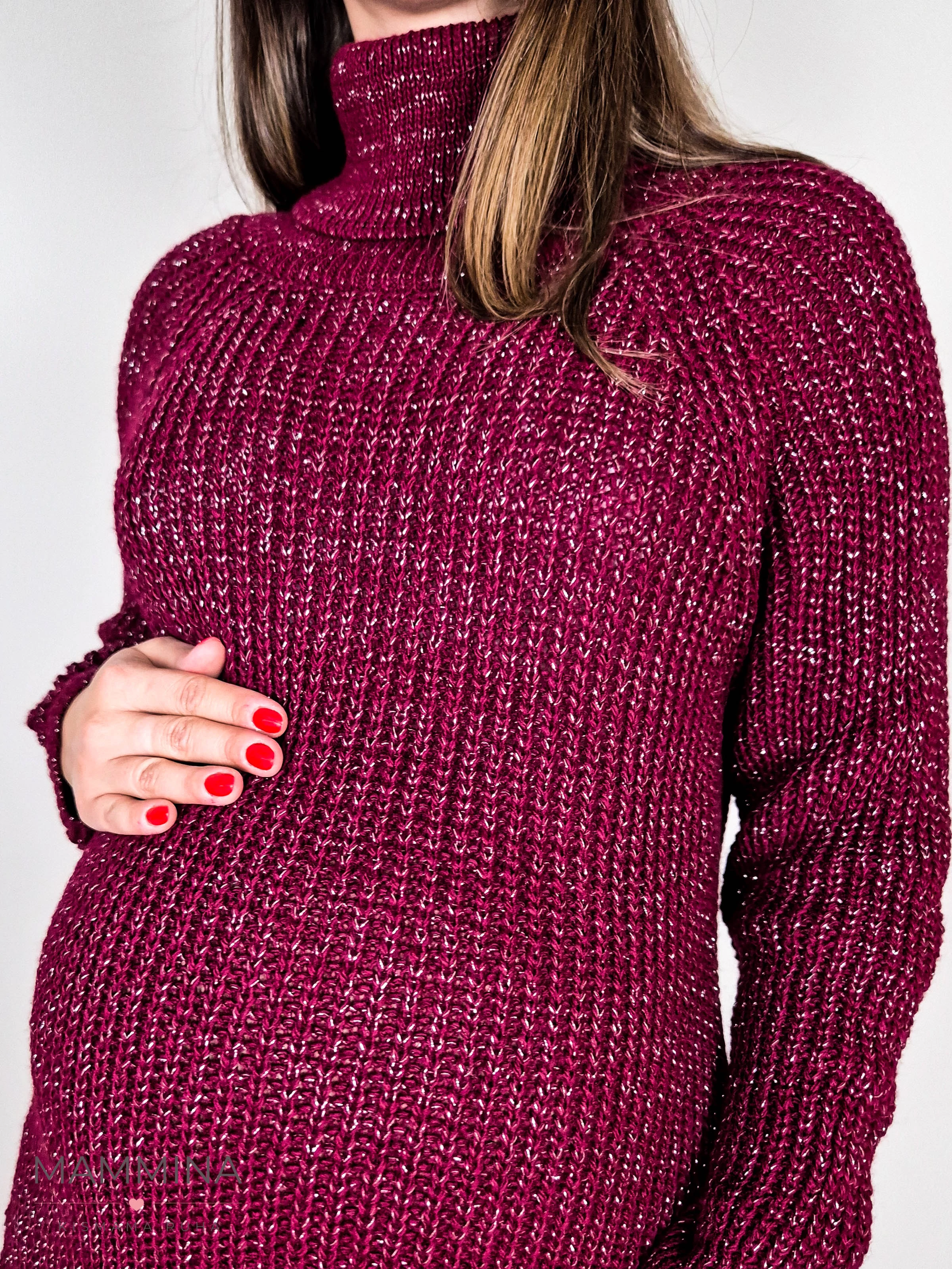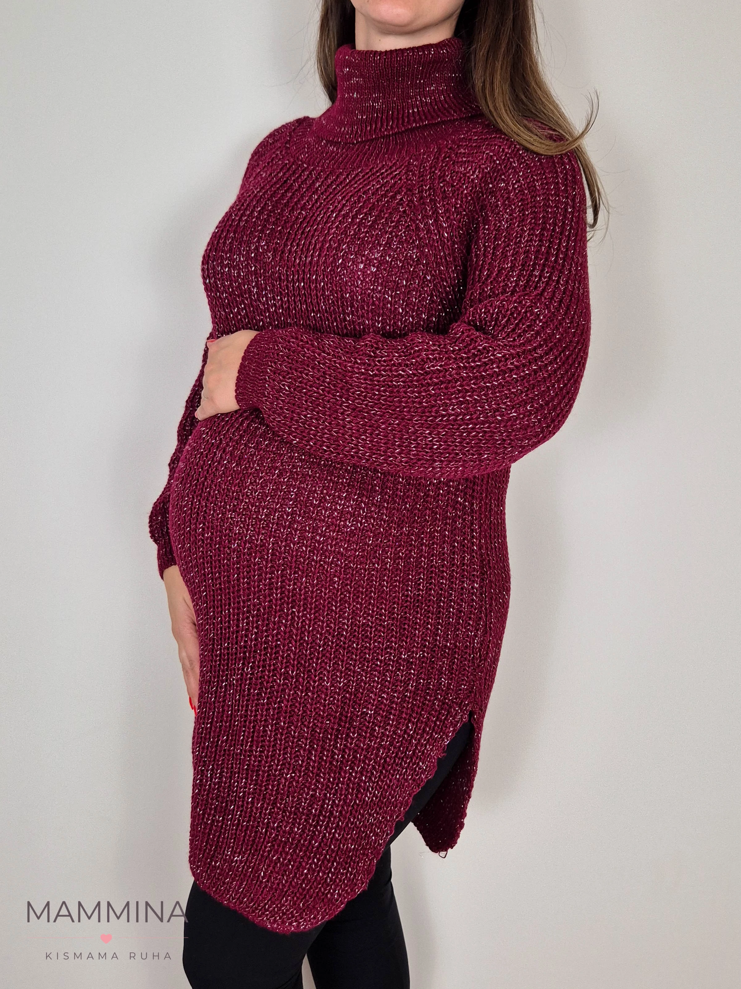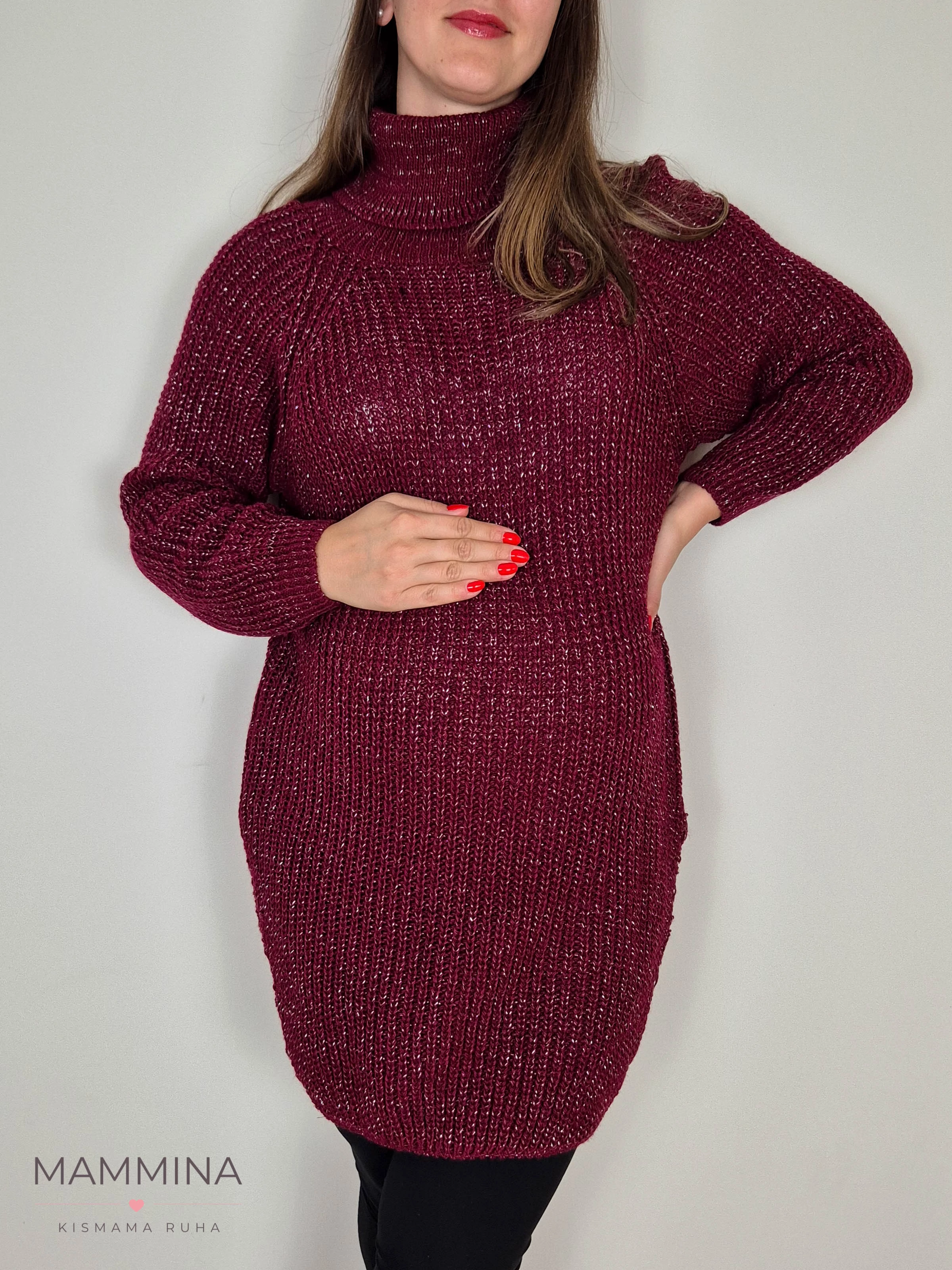 Garbós nyakú kötött tunika - burgundi csillám