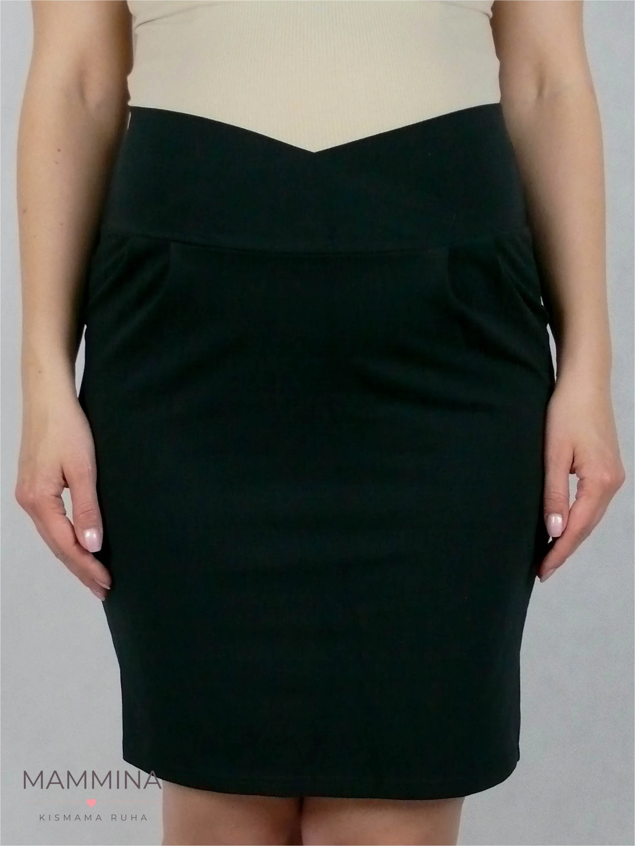 Kismama és szülés utáni szoknya V alakú derékrésszel. Minőségi anyagból készült szoknya, mely együtt növekszik a pocakkal. Szabásának köszönhetően a várandósság után is hordható! A képen S méret látható. |