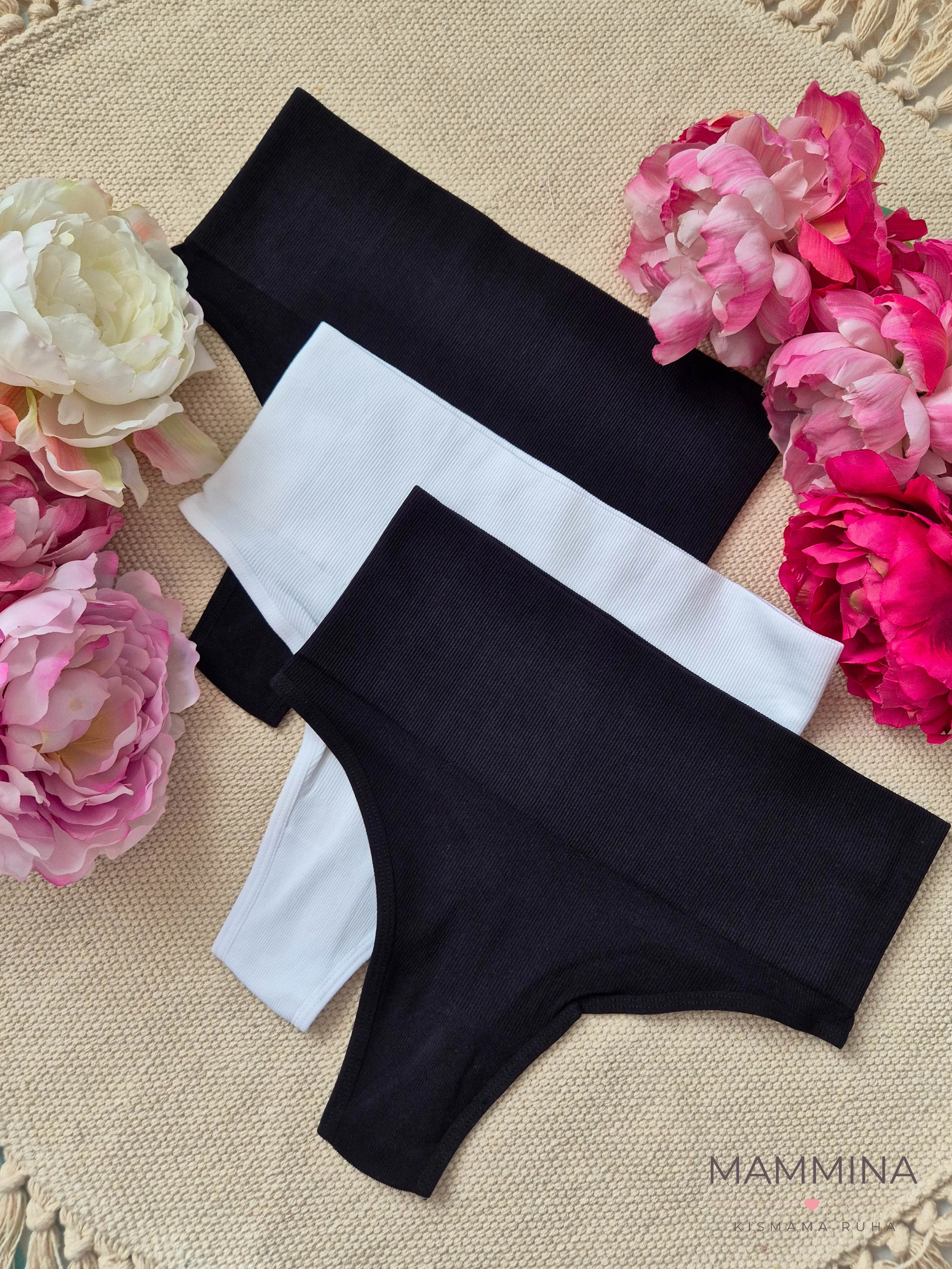 Magas derekú tanga csomag - fekete, fehér - 3 db