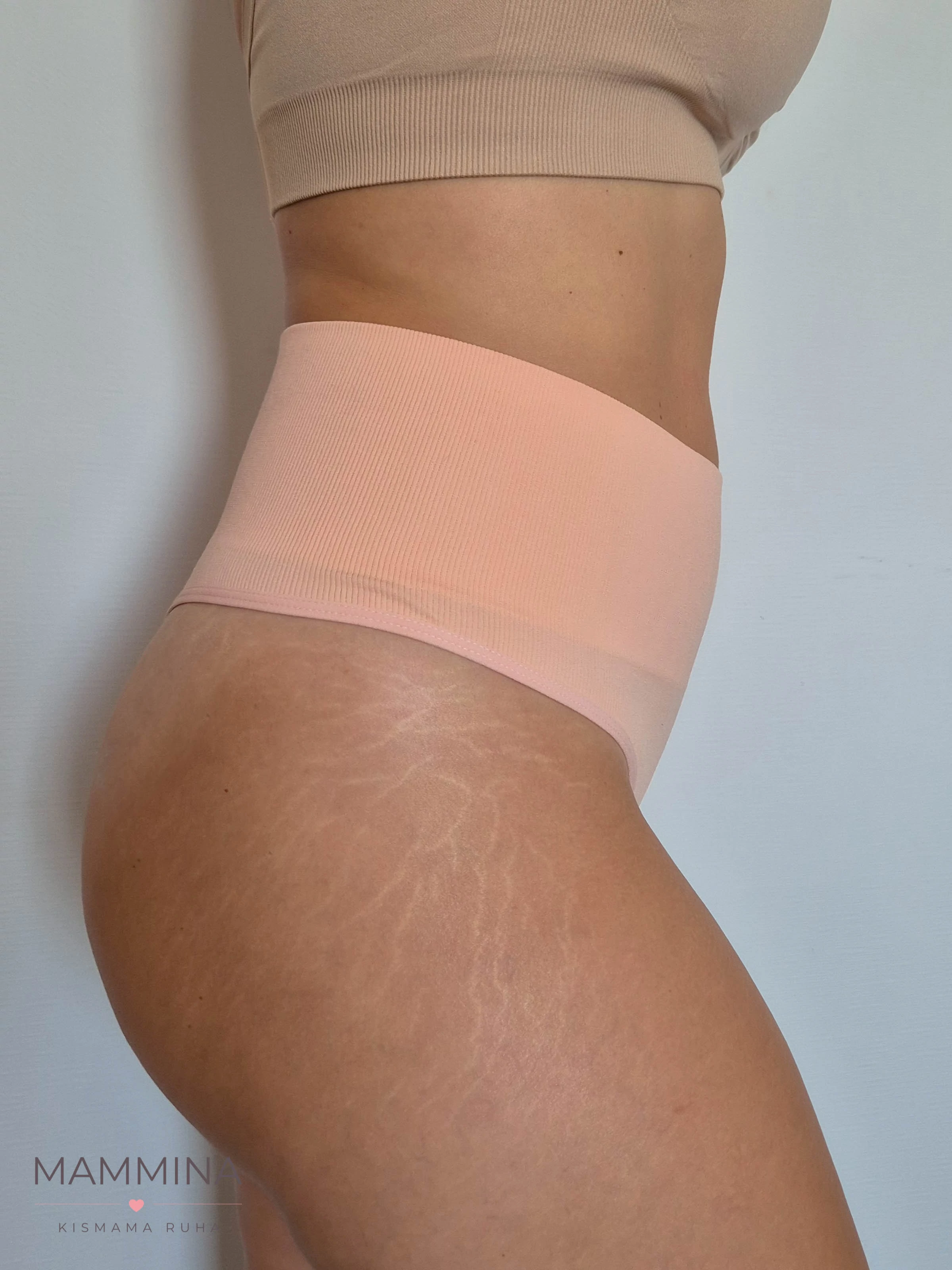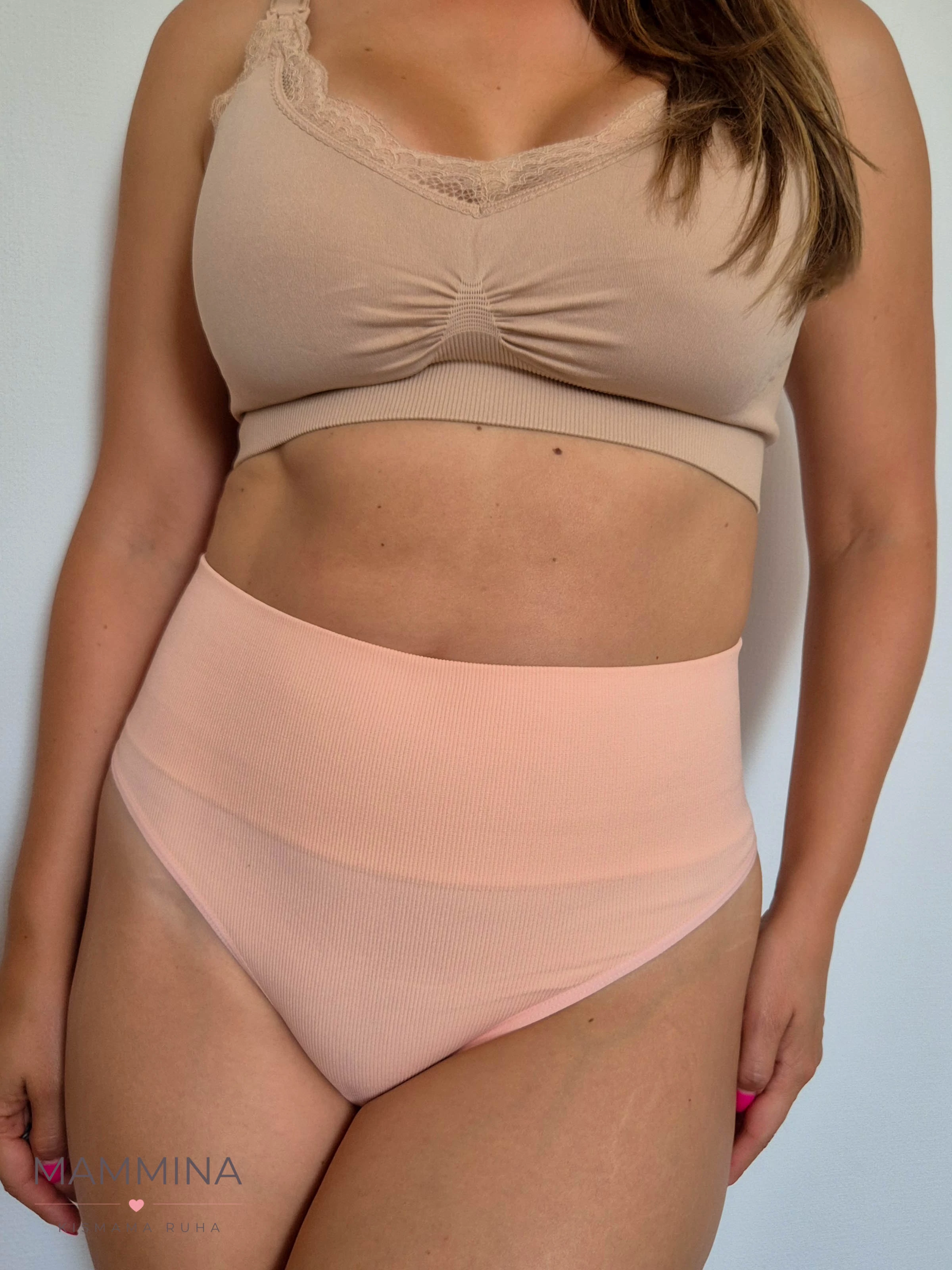 Élvezd a természetes, egész napos kényelmet puha, rugalmas anyagból készült tangáinkkal! A magas derékrész finoman tartja az alhast, miközben nem vág be a csípőbe vagy a derékba, így minden ruhában magabiztosan viselheted őket. A csomag négy árnyalatot tartalmaz: barack, bézs, fehér és fekete. Csak szülés után viselhető! Méretezés a leírásnál található. |